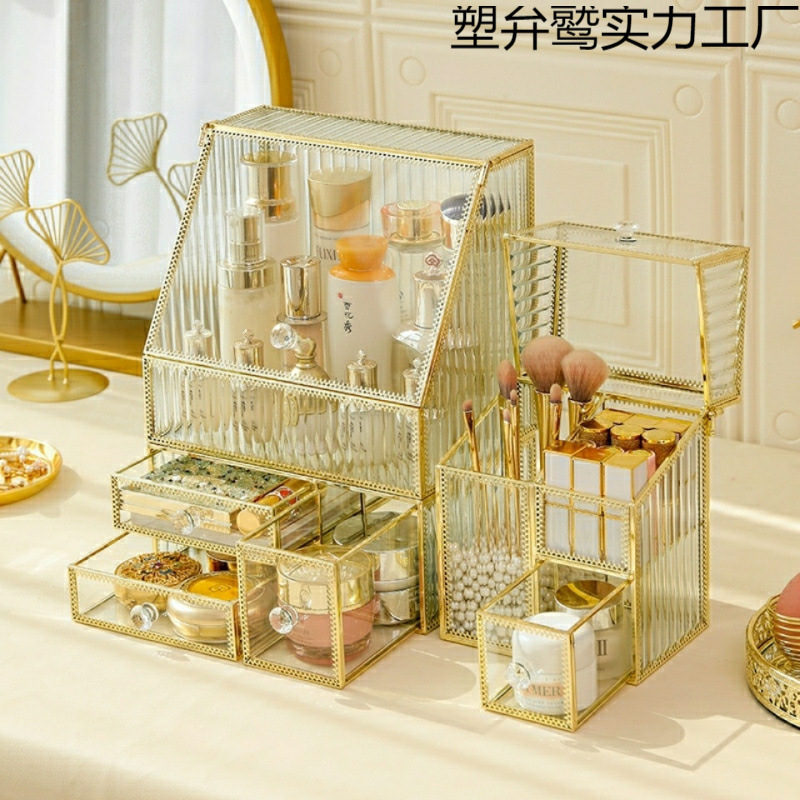 ライト高級ハイエンドガラス化粧品収納ボックスデスクトップ大容量口紅スキンケア製品ドレッシングテーブルインターネット有名人の収納ラック