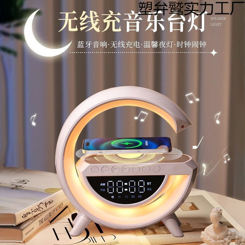 Bluetooth スピーカー、ワイヤレス充電、多機能、高価値ナイトライト、時計、誕生日テーブルランプ、アンビエントオーディオ
