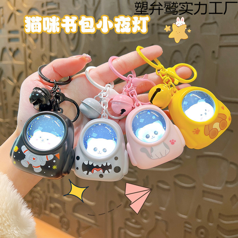 宇宙飛行士猫スクールバッグ発光ナイトライトキーホルダーアクセサリーバッグ装飾ペンダント小さなギフト卸売