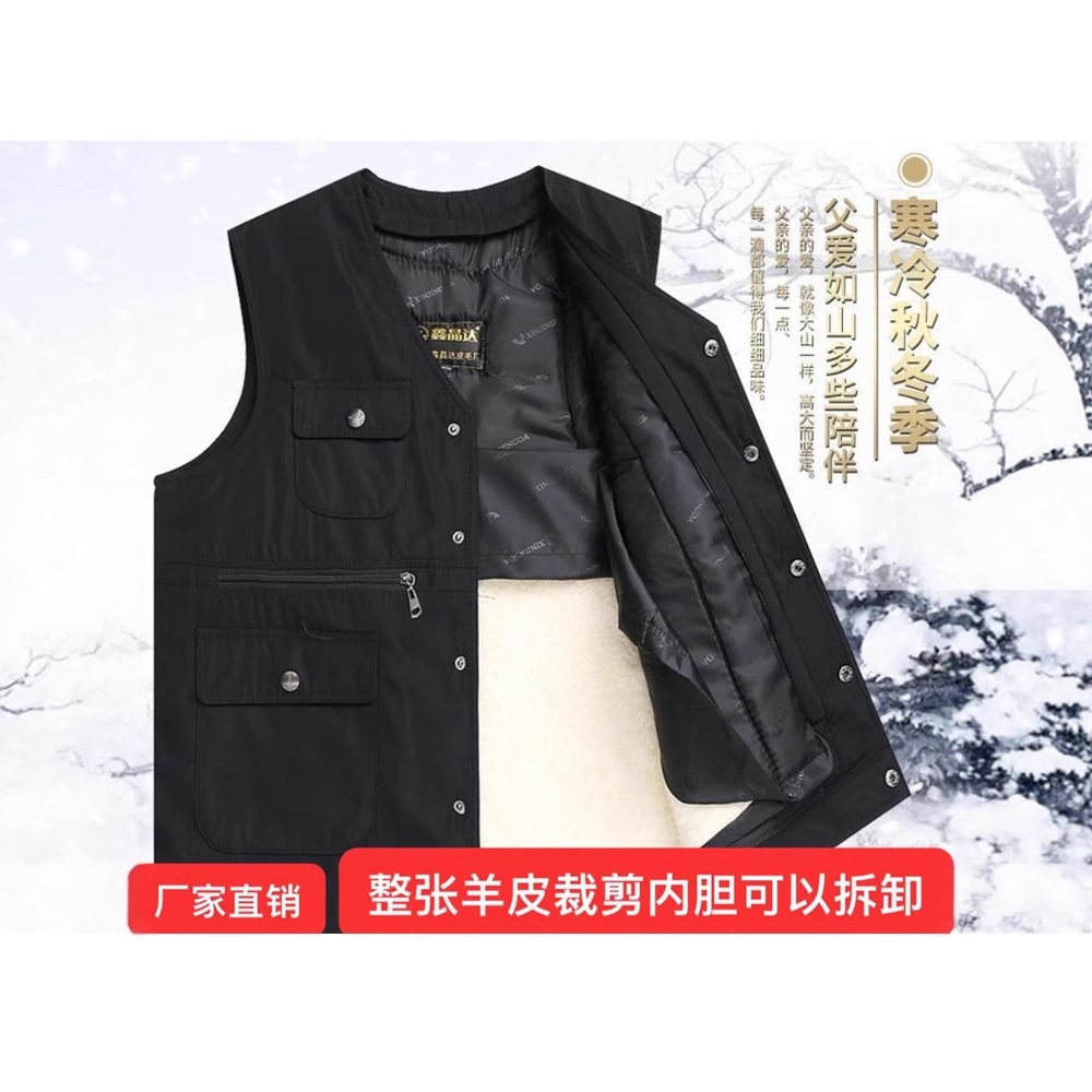 冬の新型の内胆の羊の毛皮は一体になって中高年の男性の馬甲の卸売りを取り外します。