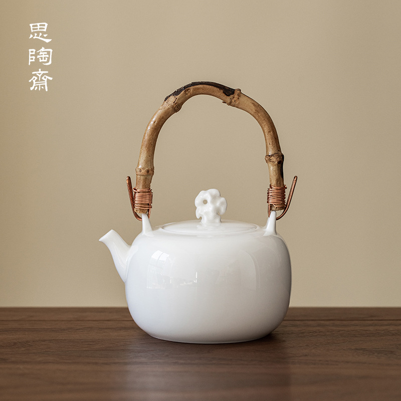 Staotai 羊脂翡翠竹ハンドルケトル家庭用セラミック模造湯沸かしティーポット小容量ティーポットフィルター付き