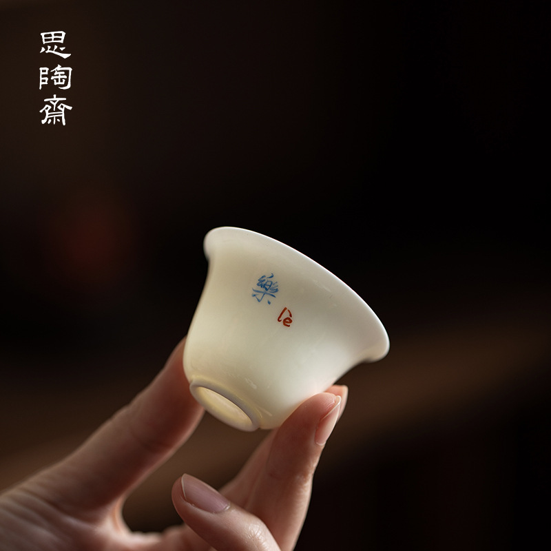 思陶斎象牙白薄胎品茗杯家庭用工夫茶器カップ事務会客手書きお茶カップ