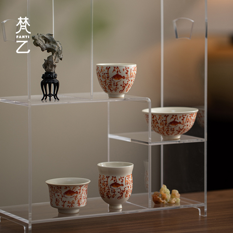 梵乙蘇打釉薬紅詩文カップ釉薬下彩創意陶磁器主人杯品茗杯カンフー茶具開片