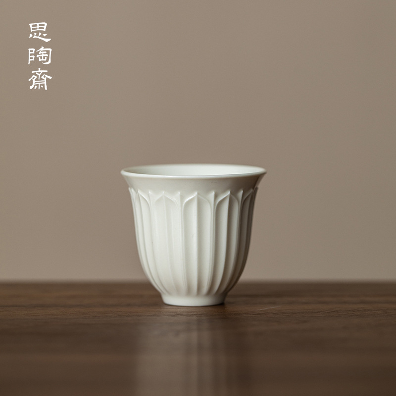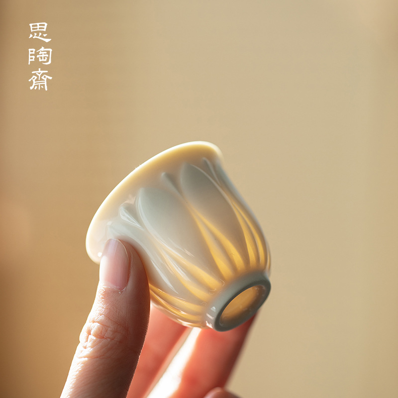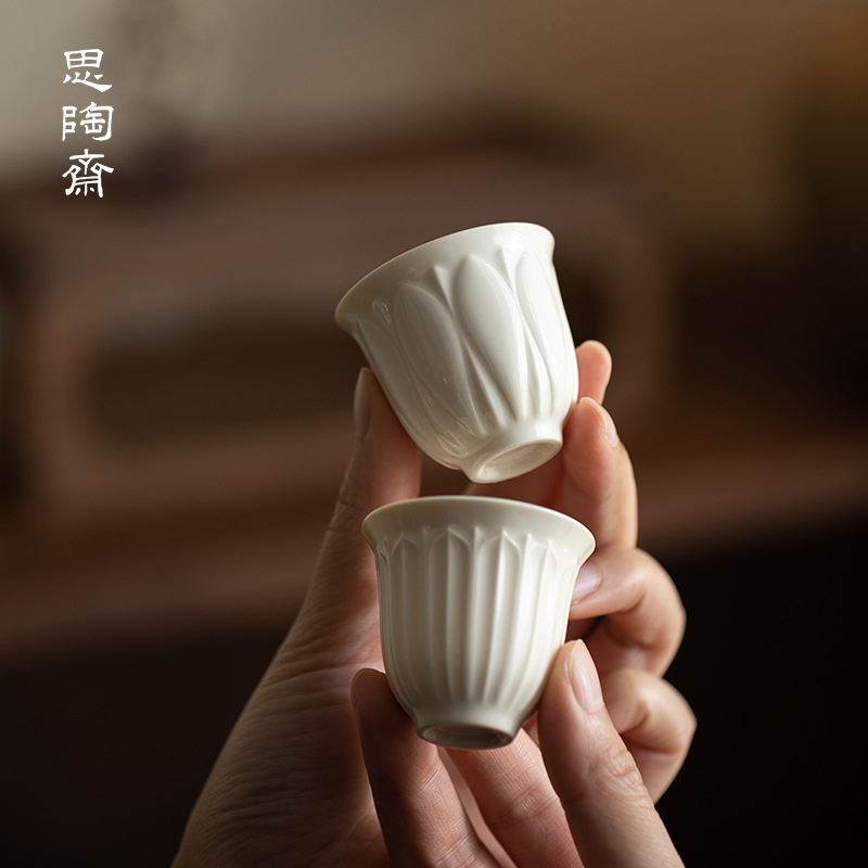 思陶斎定窯創意浮き彫りハスの花の小さいお茶の杯の家庭用陶磁器はお茶の杯を浸します。