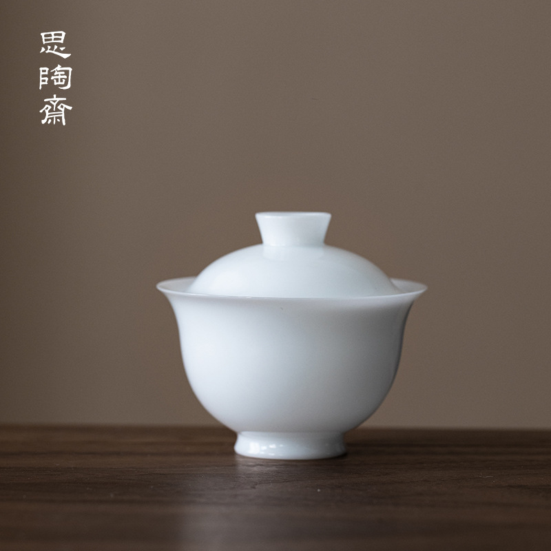 思陶斎の新型羊脂玉氷種二才元宝蓋碗の高級家庭用陶磁器の薄いタイヤは手を温めないでお茶の碗を入れます。