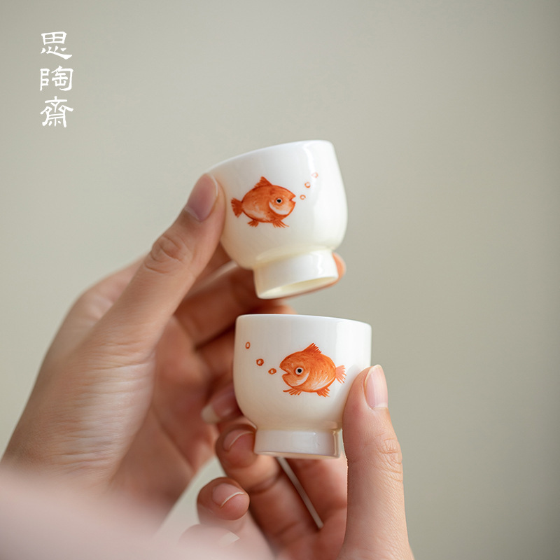 思陶斎の手描きの金魚の薄い胎は杯の工夫のティーセットの1杯の主人の杯の家庭用の陶磁器の小さいお茶の杯に対してお茶の杯を飲みます。
