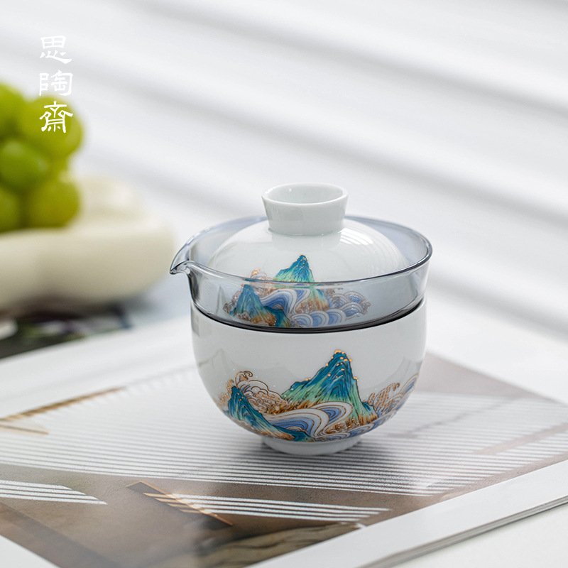 思陶斎釉下彩蘭茶器セット蓋碗茶杯ギフトボックスビジネス事務お土産メーカー卸売り