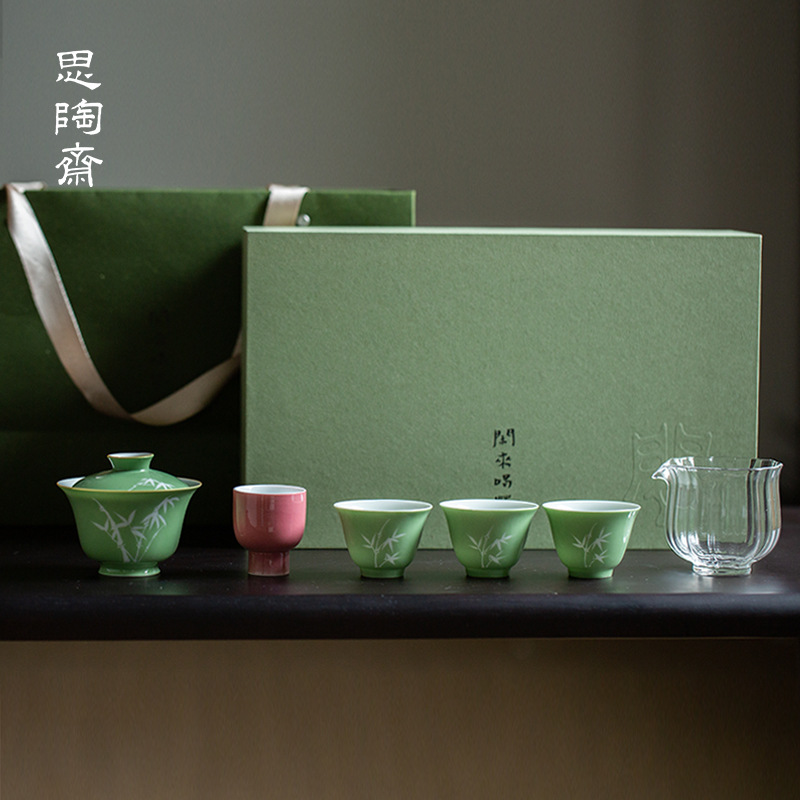 思陶斎釉下彩緑竹セット家庭用高級工夫茶器プレゼントビジネスお土産メーカー卸売り