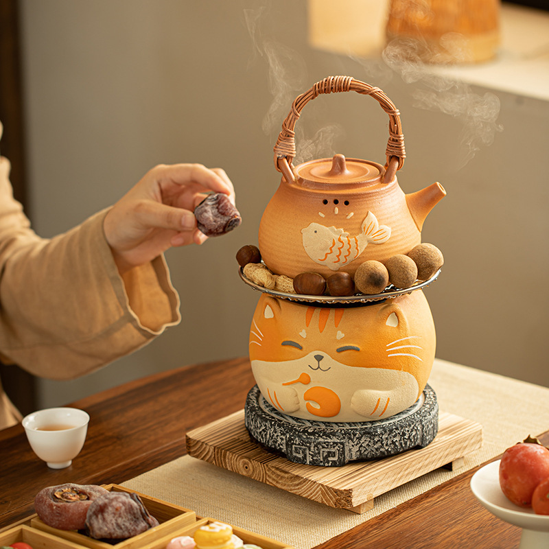 龍猫囲炉煮茶家庭用室内炭素炉茶炉粗陶明火焼き煮茶茶器メーカー卸売り