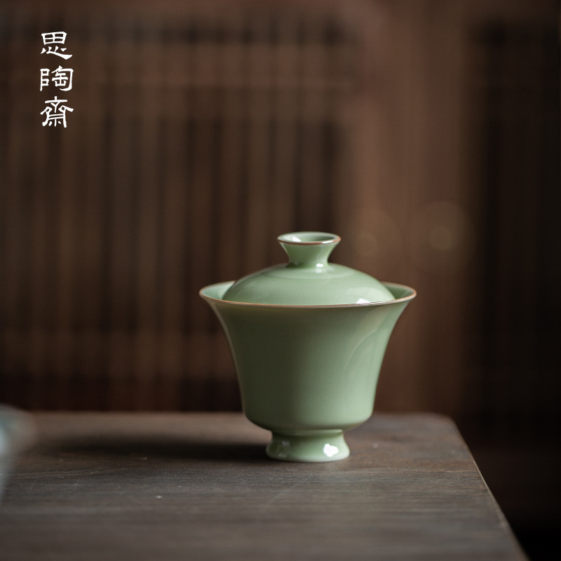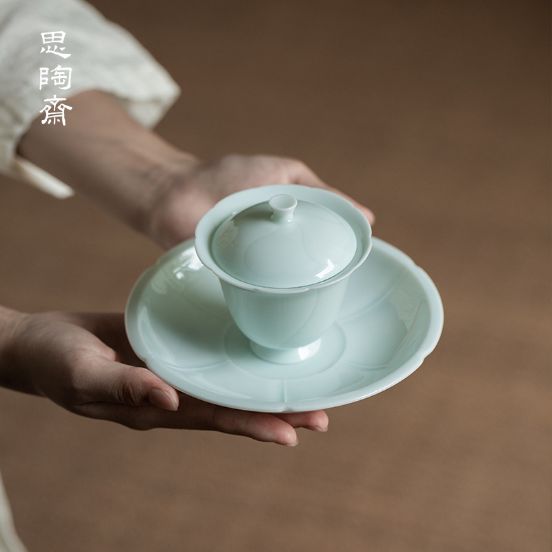 影青玉蘭蓋碗茶杯純粋な手作りのシンプルな家庭用三才蓋碗の工夫茶器陶磁器のお茶を入れる碗の卸売り