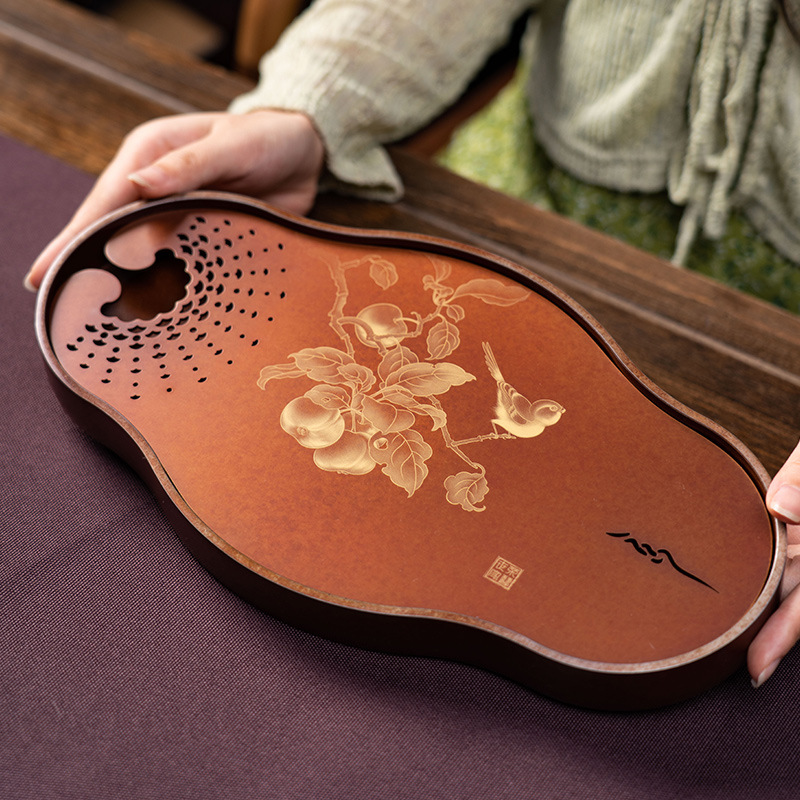 メーカー卸売り銅彩画茶盤微彫刻技術水盤家庭用小茶盤中国式貯水式茶具トレイ