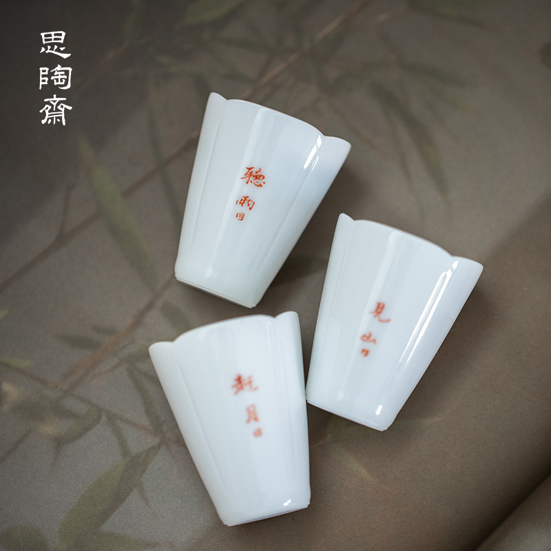 思陶斎手書き花口茶杯家庭用シンプルな陶磁器品茗杯工夫茶具白磁カップ卸売り