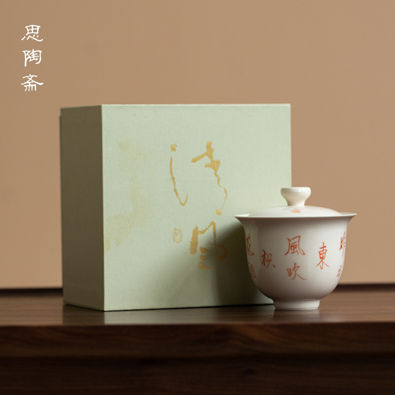 思陶斎草木灰手書き詩文小蓋碗単一薄胎防熱手泡茶碗工夫茶器茶器