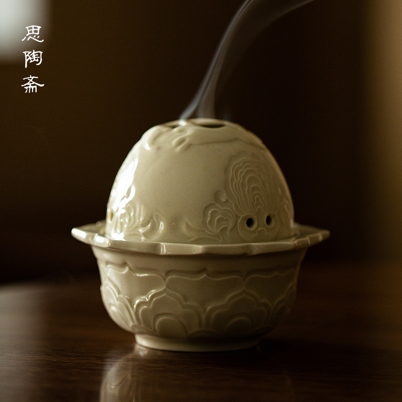 定窯黄三兎共耳盤香炉模造古陶磁器家庭用室内香薫炉茶道工夫茶器部品