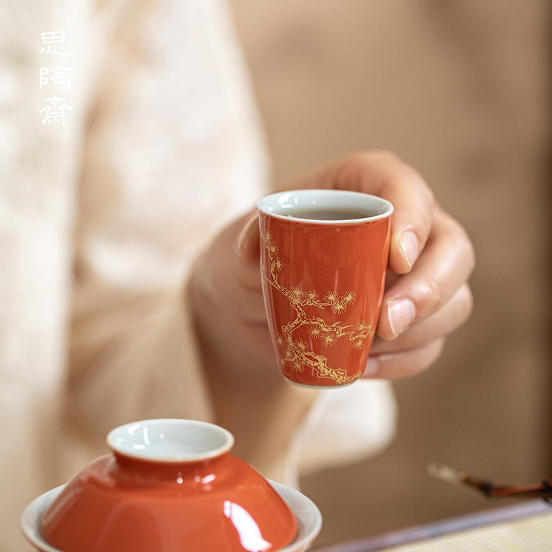 思陶斎紅主人杯家庭用陶磁器単杯聞香杯個人専用工夫茶道具品茗杯カップ