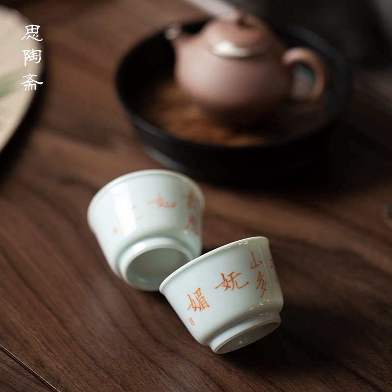 思陶斎手描きストレートカップ個人創意白磁器品茗杯家庭用シングルマスターカップ工夫茶器カップ