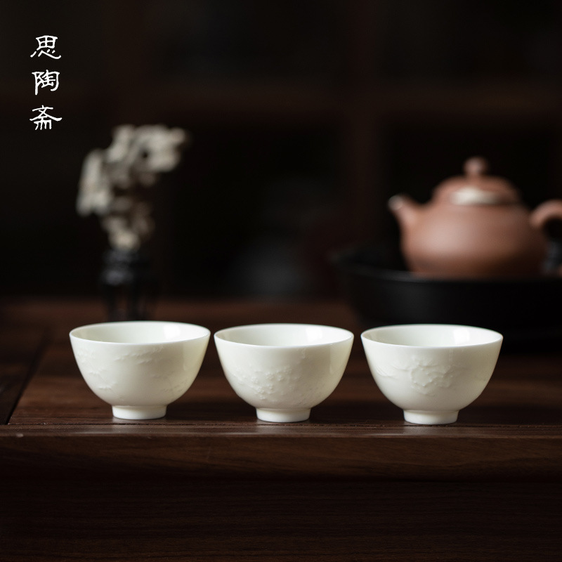思陶斎は古風な浮き彫りの松竹梅の小さい円の杯の工夫の茶器の個人の杯の杯の薄い胎の陶磁器の品の茗杯をまねます。