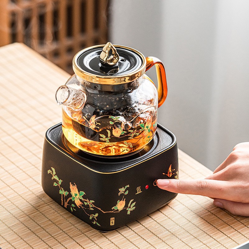 ミニ電気陶炉蒸煮花茶加熱ガラス湯たんぽ家庭用羊脂玉磁器茶道具セットお土産
