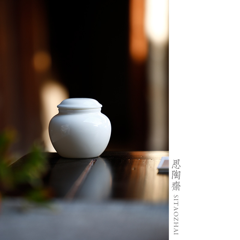 思陶斎の小さいサイズの白磁の茶の葉の缶の香の粉の粉の密封の缶は簡単で高級な陶磁器の貯蔵の茶倉の茶器の部品です。