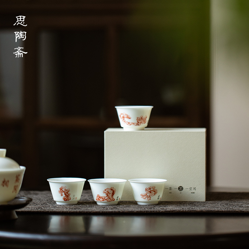 思陶斎象牙白手描き太湖石聞香杯家庭用品茗杯工夫茶器礼箱セットお土産