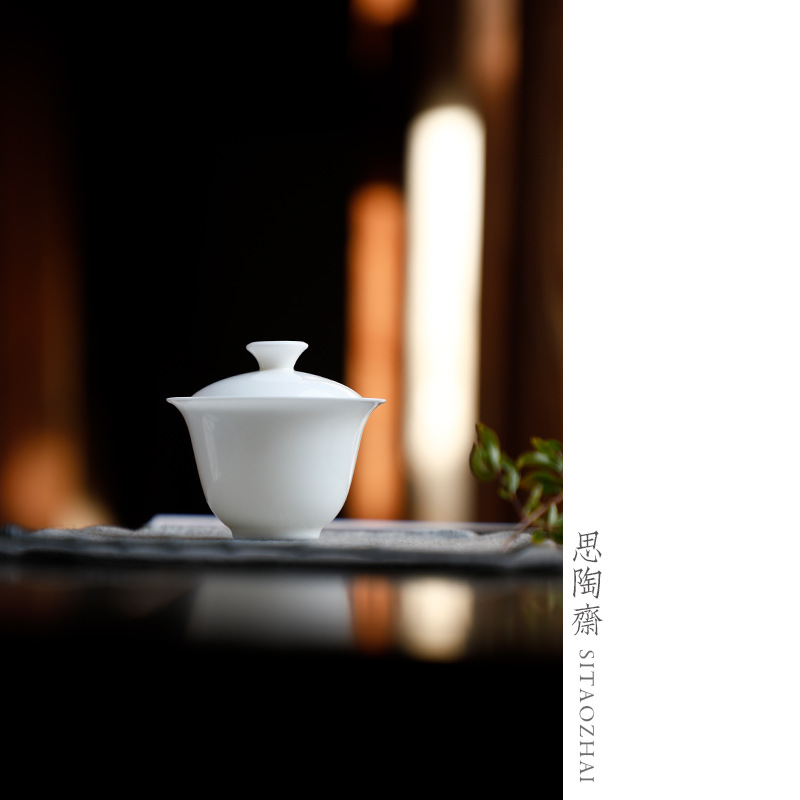 思陶寨羊脂玉蓋碗茶杯 白磁茶碗 蓋付き 単品 二才 大容量 カンフー 家庭用茶器 卸売