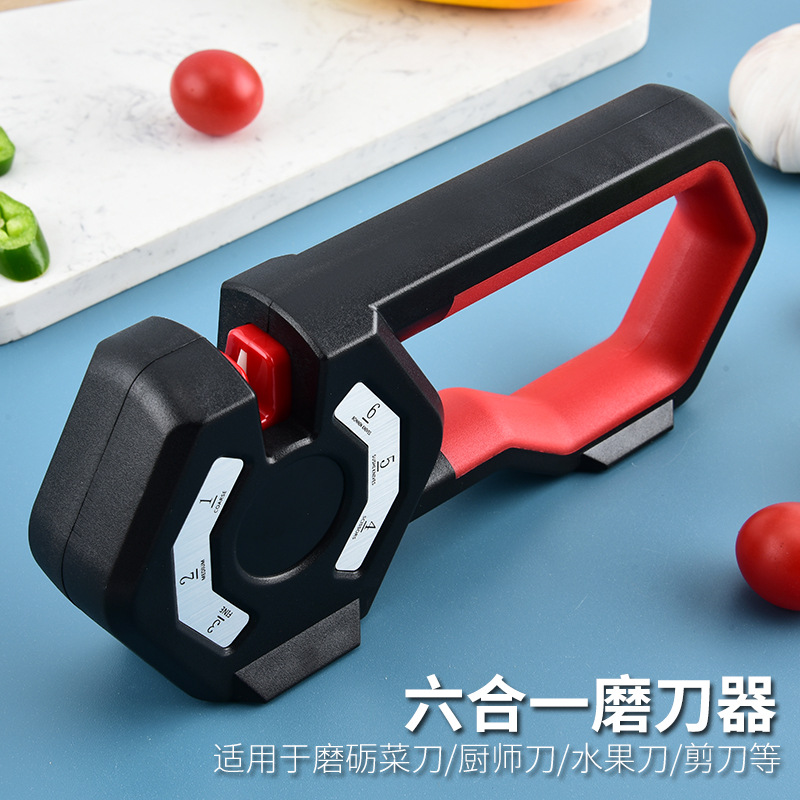 クロスボーダー創意六合一磨刀器タングステン鋼ダイヤモンド陶磁器磨刀開刃磨切多機能磨刀器