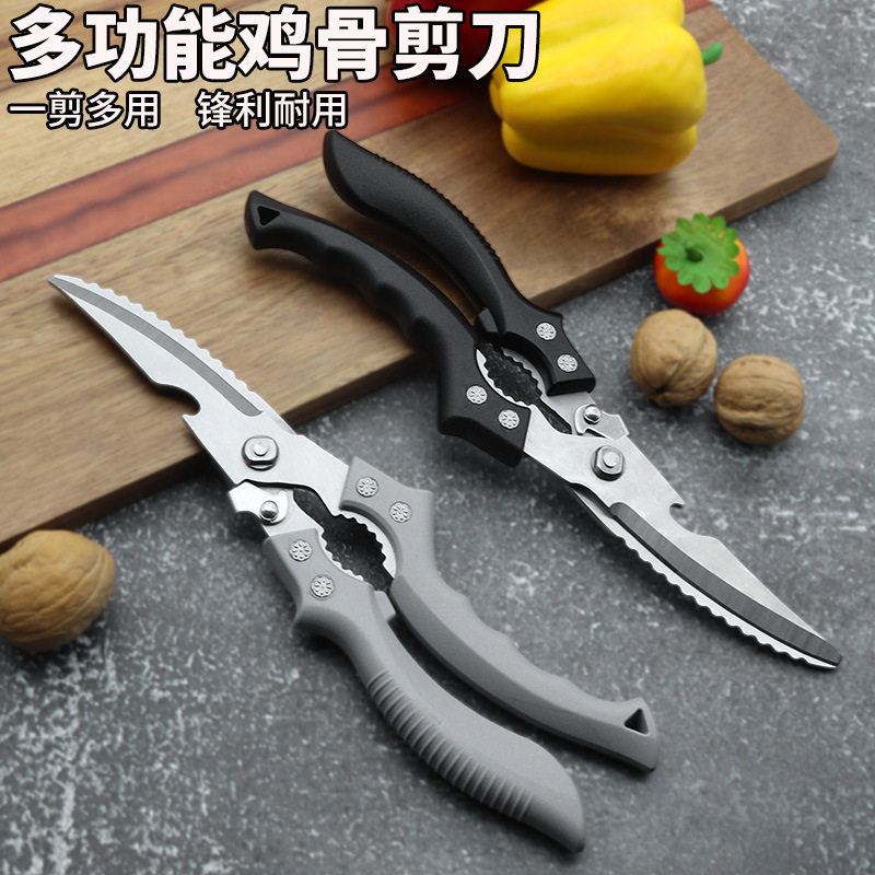スポット卸売り多機能ステンレスハサミ高硬度鋭利魚肉ハサミ強力キッチン鶏骨専用ハサミ