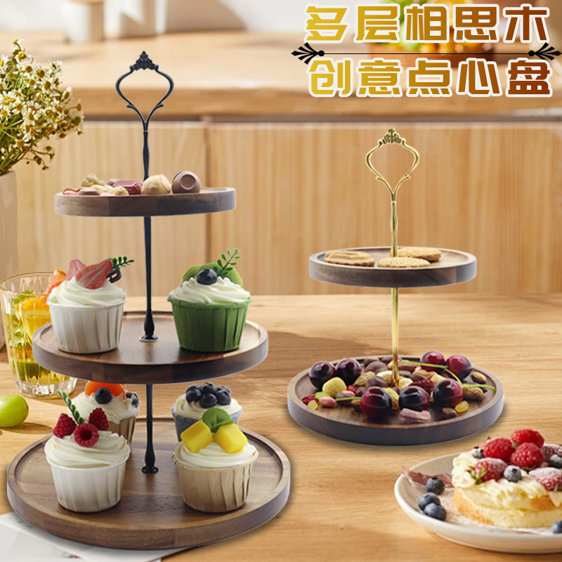 展示棚円形アカシア木ケーキトレークリエイティブ多層ディナープレート家庭用高質感お菓子木製トレー