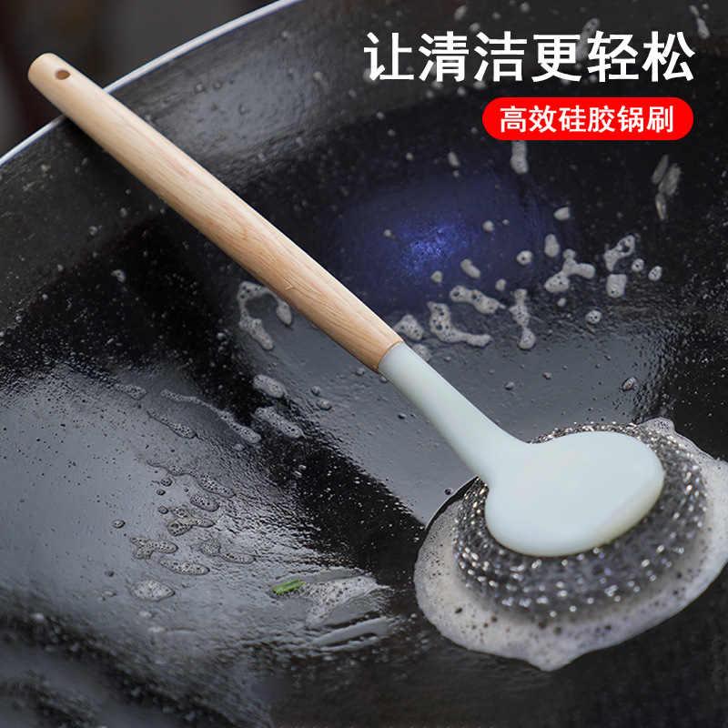 食品級ステンレス鍋ブラシ厨房専用洗浄鍋鋼線ボールブラシ長柄無粘着手汚れ除去ブラシ鍋神器