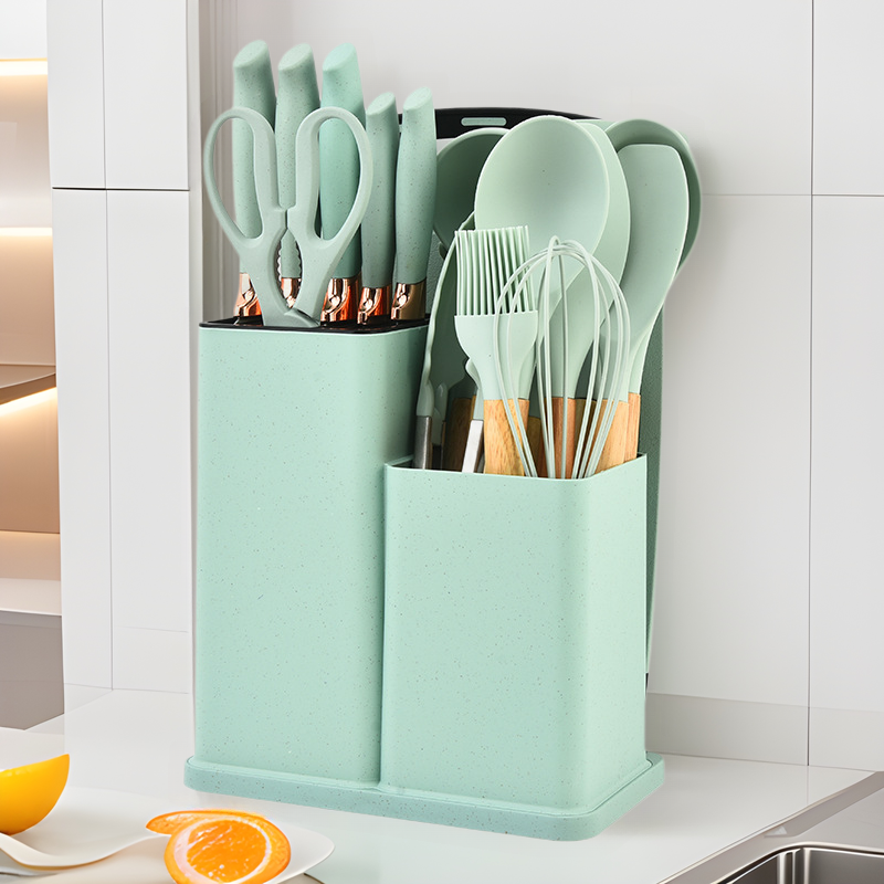 クロスボーダーシリコンキッチン用品19点セット家庭用ノンスティック特殊木製ハンドルシリコンスパチュラスプーンキッチン調理ツール