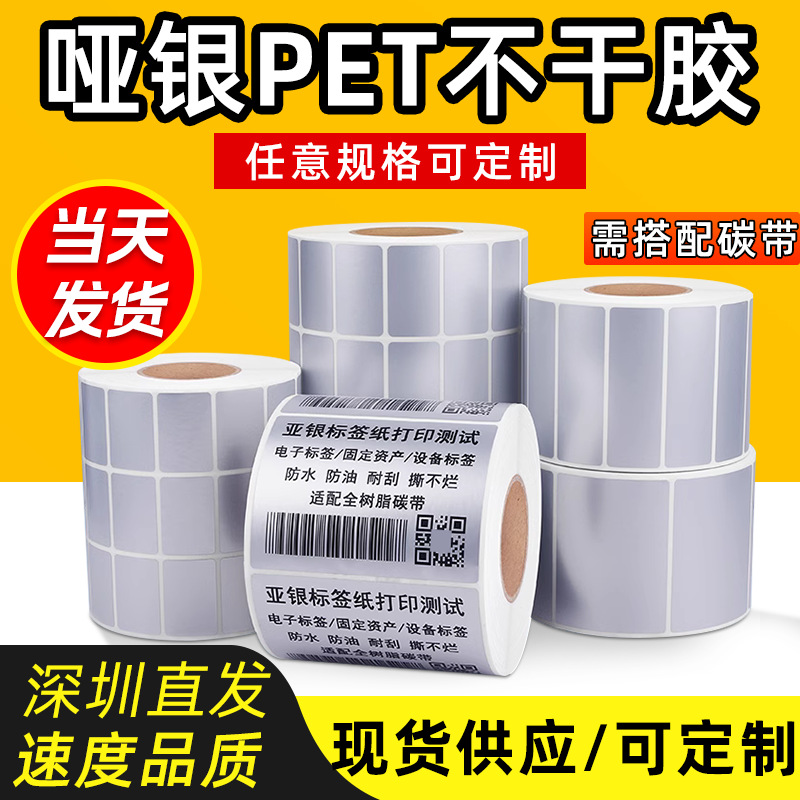 亜銀ラベル紙PET不乾性バーコード印刷シール防水防油銀色空白ダミー銀ラベル紙