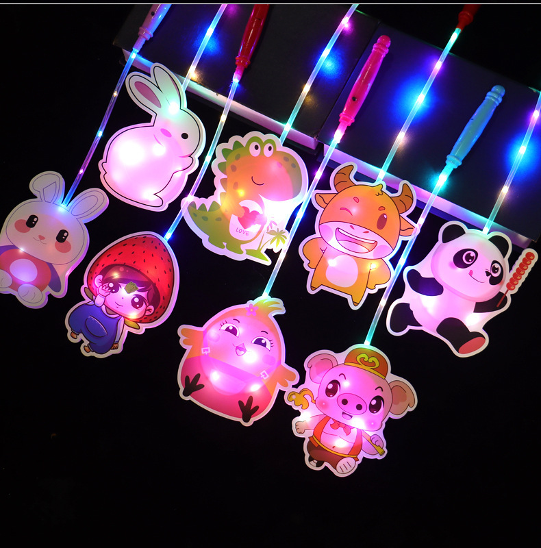 ウサギの新型七彩中国式diy円形小提灯漫画夜市花灯led児童手提げ提灯卸売り