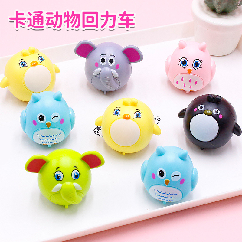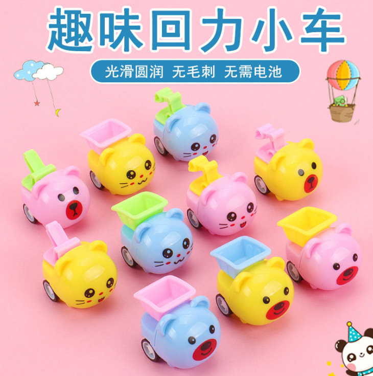 漫画のアイデアのリターン車のおもちゃの車の露店は子供が転んで力の動物の赤ちゃんの益智の小さい車を返します。