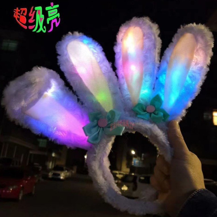 光るカチューシャはコードをスキャンして長い毛の光るウサギの耳の新製品のledのぬいぐるみのウサギの耳のカチューシャの14灯を送ります。