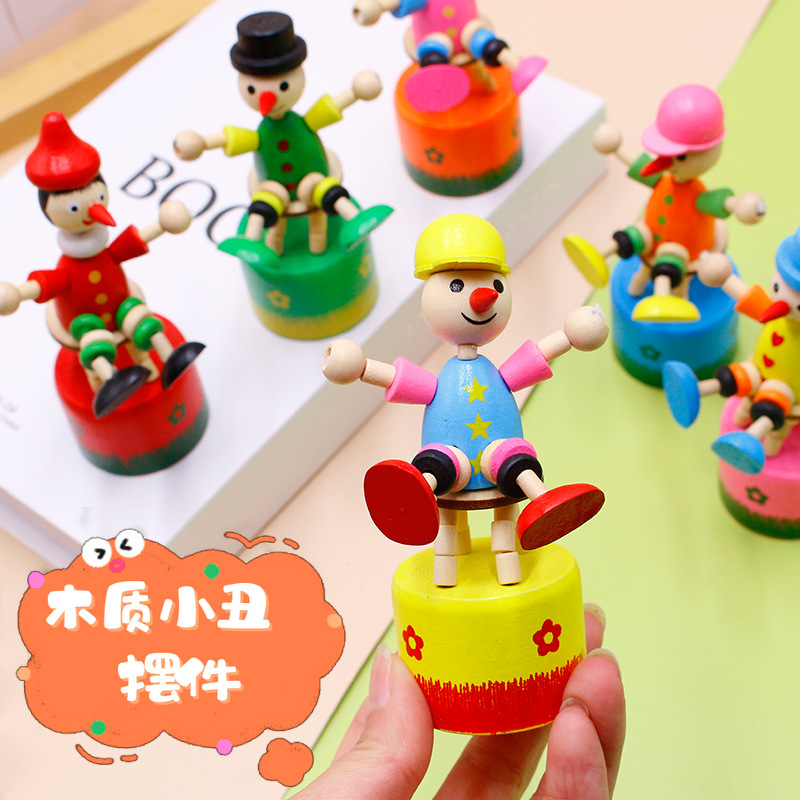 創意的に木の道化師を揺らして踊ることができる樽のおもちゃのデスクトップの置物を押して子供の知能のおもちゃを発散します。