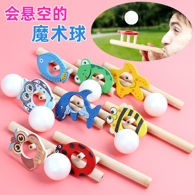 クロスボーダー木のボールを吹くゲームの懸濁球はボールを吹く器の子供の年のノスタルジックな益智の親子のゲームのおもちゃの卸売りを吹きます。