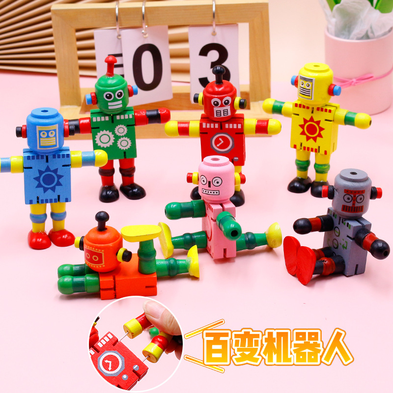子供用木製早教玩具創意個性積み木玩具木製変形弾性ロボットメーカー直販