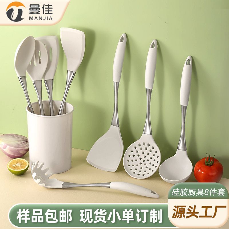 新型シリカゲル調理器具セット調理シャベルスプーンは鍋専用シャベルステンレス柄シャベルスプーン調理器具8点セット