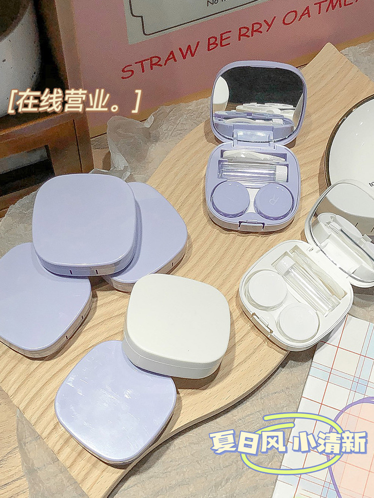 Insマカロンコンタクトレンズ収納ケースシンプル携帯鏡付きカップルケース女子学生看護美瞳ケース