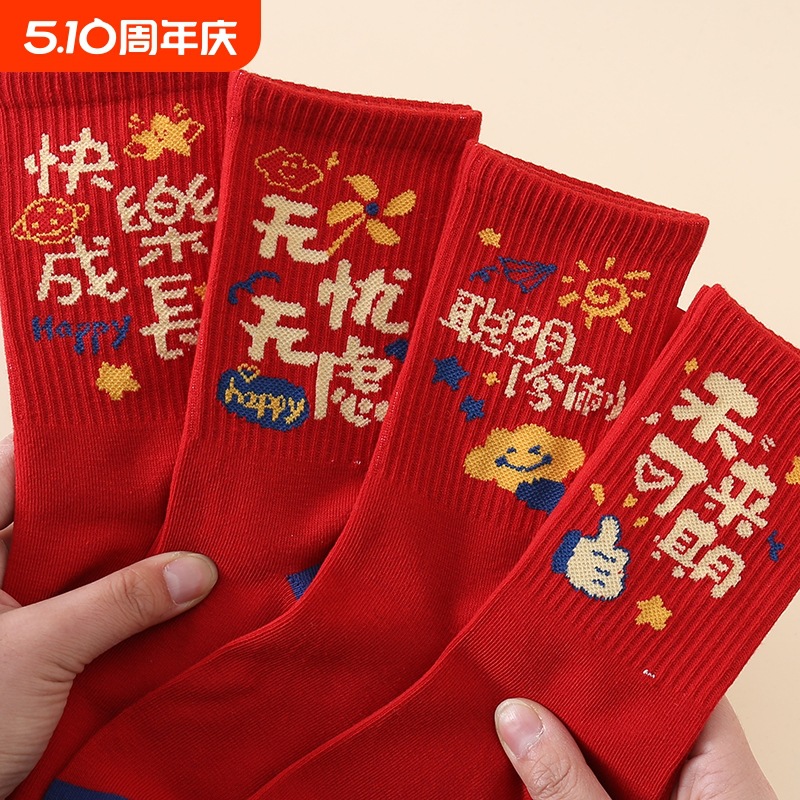 子供の赤い靴下の男の子の女の子の6-12歳の本命年の蛇の年の生肖の靴下の2025冬の中で大きい子供の新年