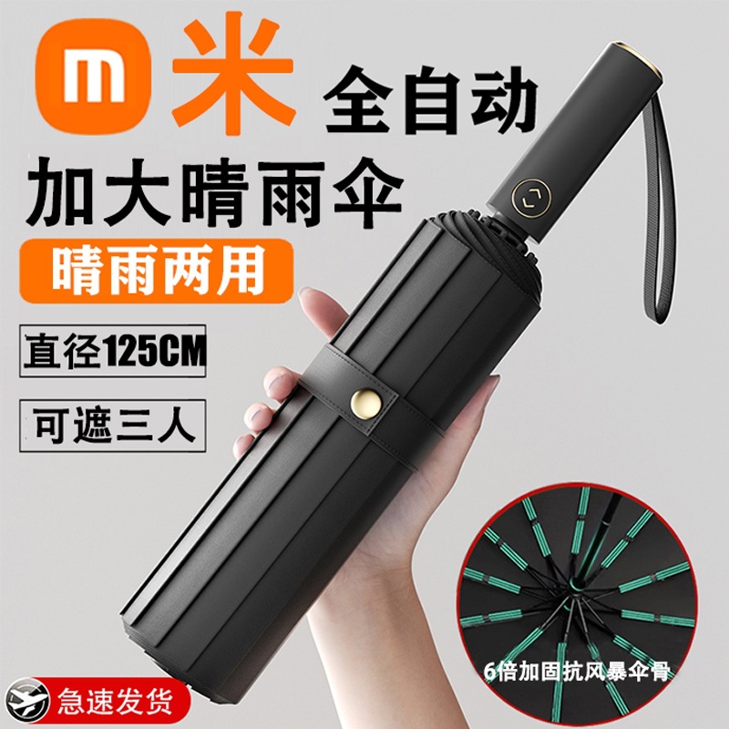 女性と男性のための全自動傘、晴雨兼用、特大強化日焼け止め、UVカット、折りたたみ日傘