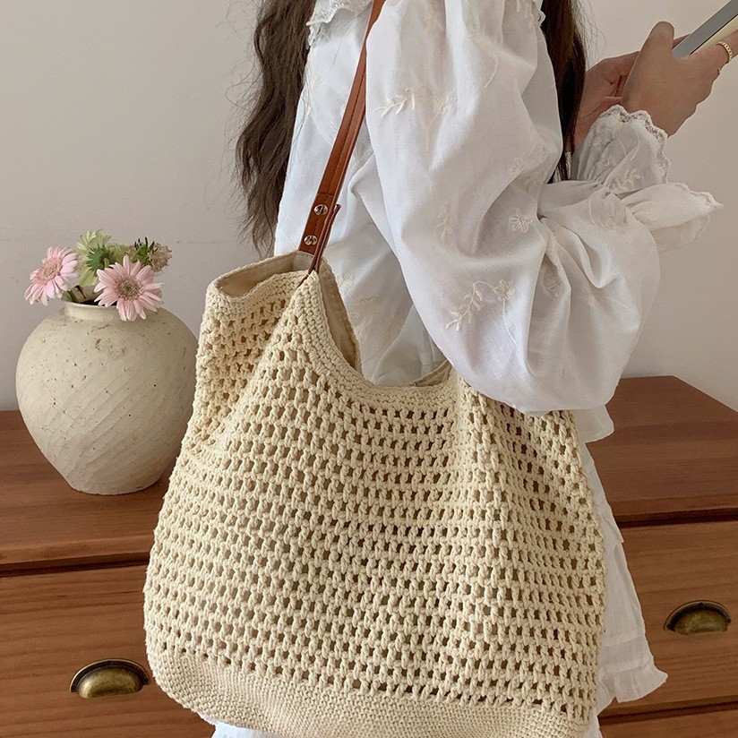 編み草編みバッグレディース大容量2025新作夏手提げショルダーバッグ海辺ショルダーバッグ通勤トートバッグ