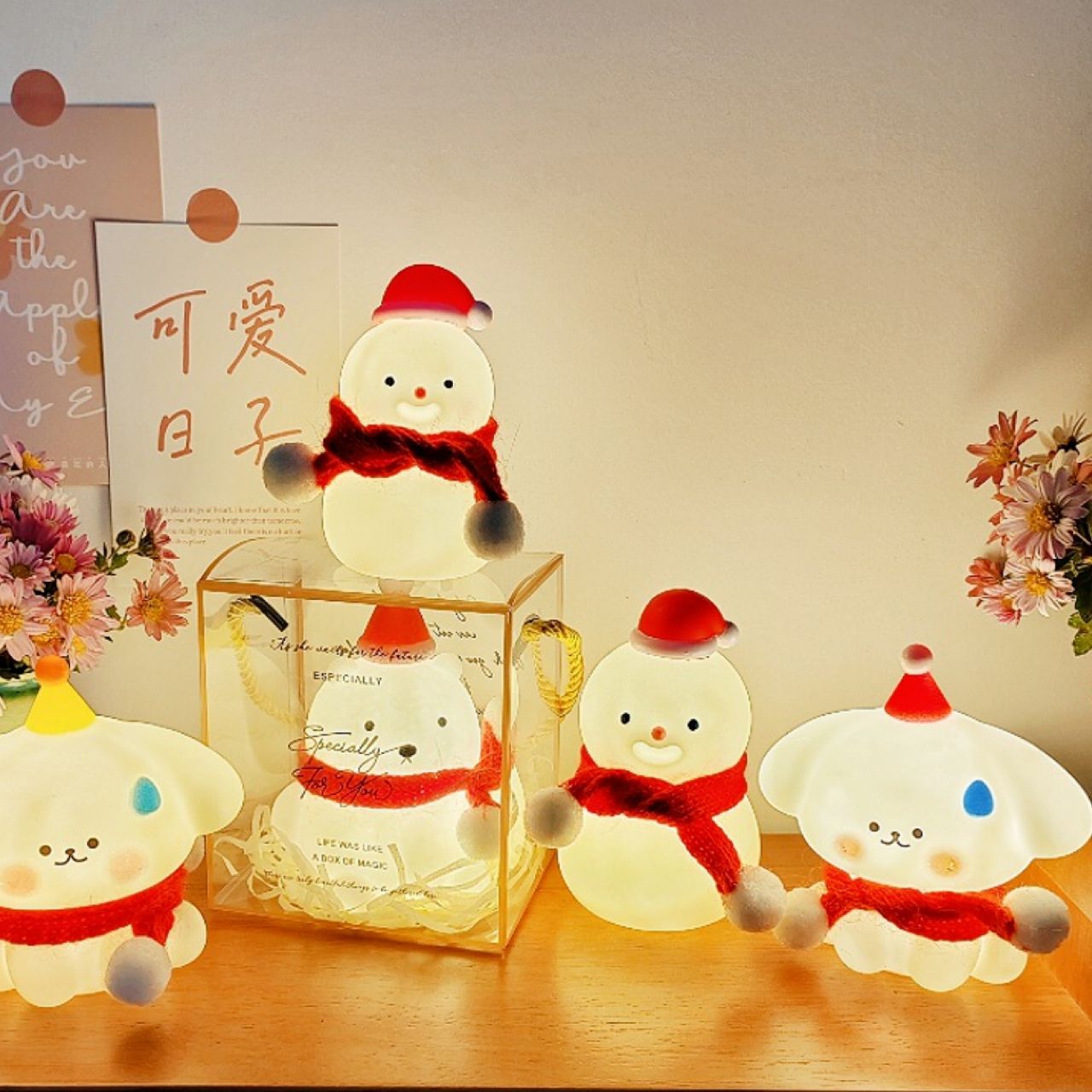 創意的なクリスマス雪だるまの夜の明かりのクリスマスの小さいプレゼントのデスクトップの置物の光るおもちゃの新年のお土産