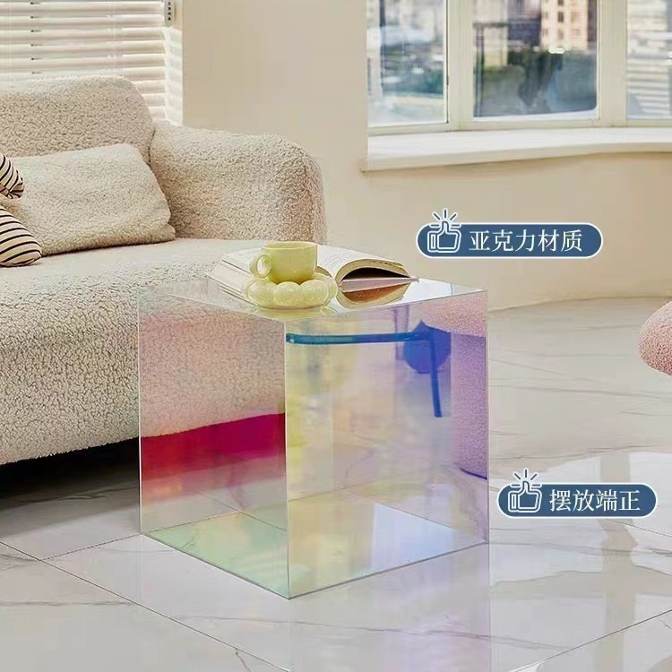 透明なアイランドテーブルディスプレイアクリルミラーディスプレイスタンド収納ラック靴店のブースクリエイティブベッドサイドテーブルサイドテーブル