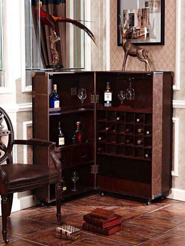 レトロなスーツケース型ワインキャビネット両開きドアモバイルフレンチミッドセンチュリースタイルクリエイティブハイキャビネットキャビネットHAL0家具