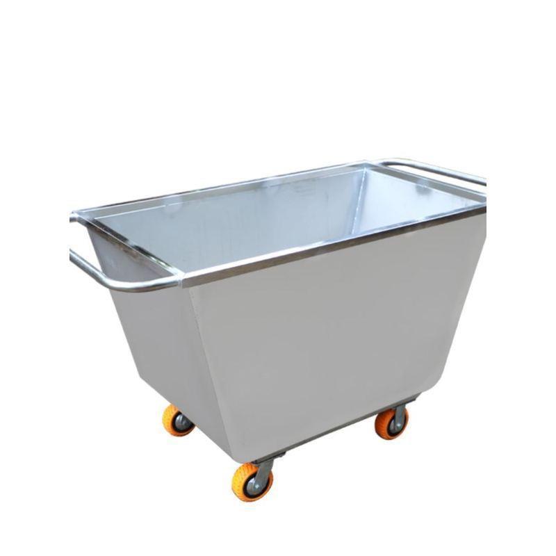 ダンプソリッドステンレス鋼厚みのある大型ホイール飼料トロリー ステンレス鋼製ダンプカート飼料カート輸送トラック