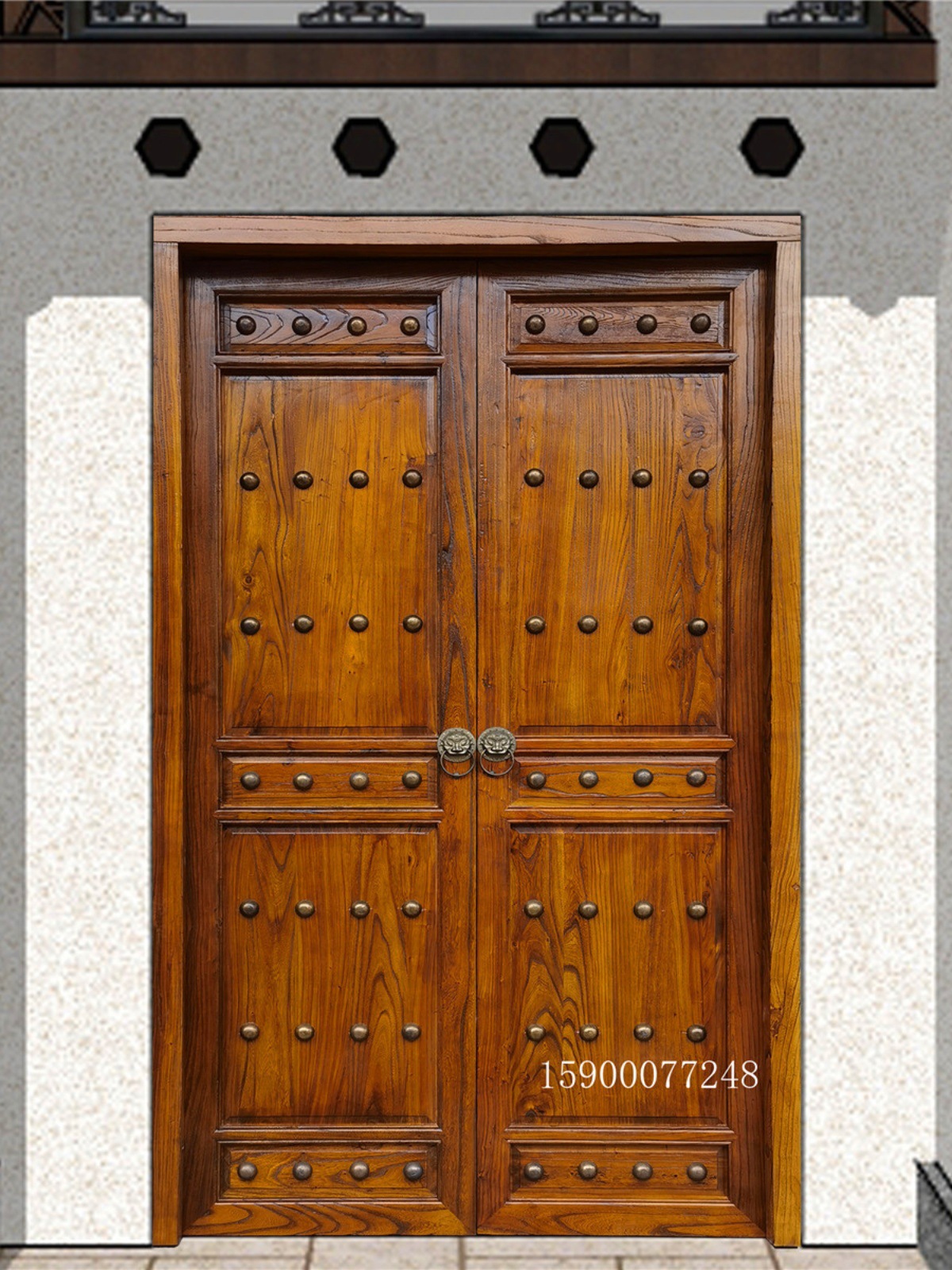 Senzao 古いニレの中国のアンティークドア農村宗廟無垢材ドアレトロヴィラ中庭両開きドア
