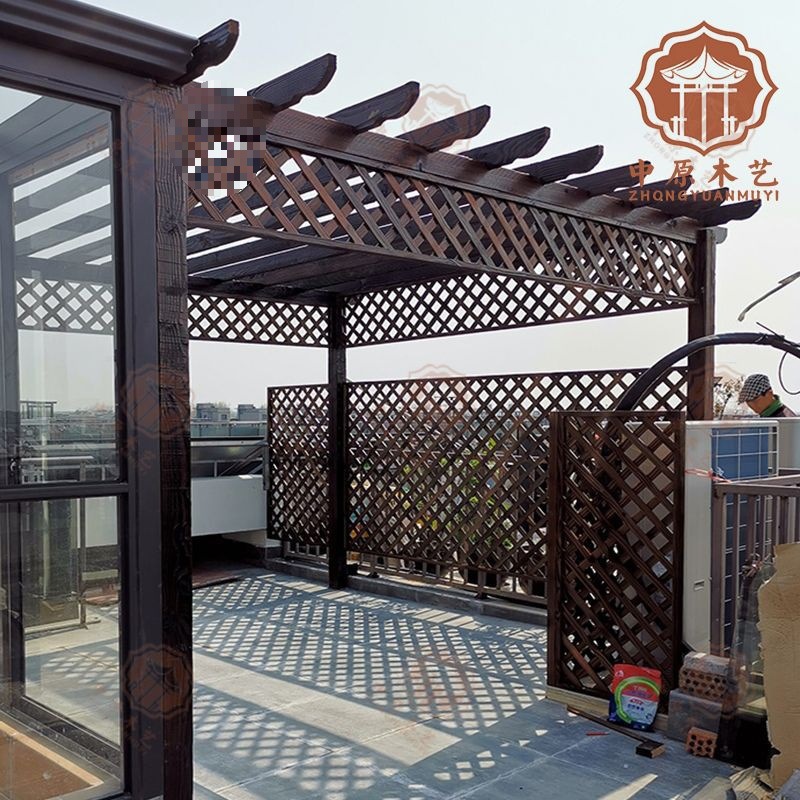 屋外炭化木材防錆木材パビリオン中庭ブドウラックポールフラワーラック屋内廊下家庭用木製床