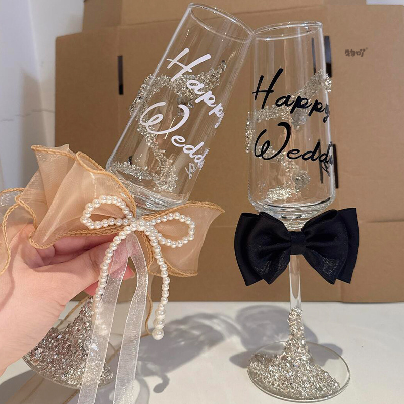クリエイティブニッチシャンパングラス乾杯グラス DIY 乾杯グラス結婚式ペア手作り素材パッケージ結婚式婚約ギフト