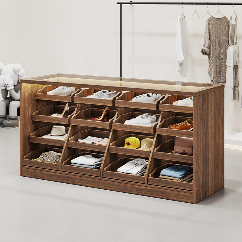 無垢材アイランドテーブル 4 層ディスプレイキャビネット衣料品店婦人服店アイランドテーブル流水キャビネットディスプレイ装飾品ブース
